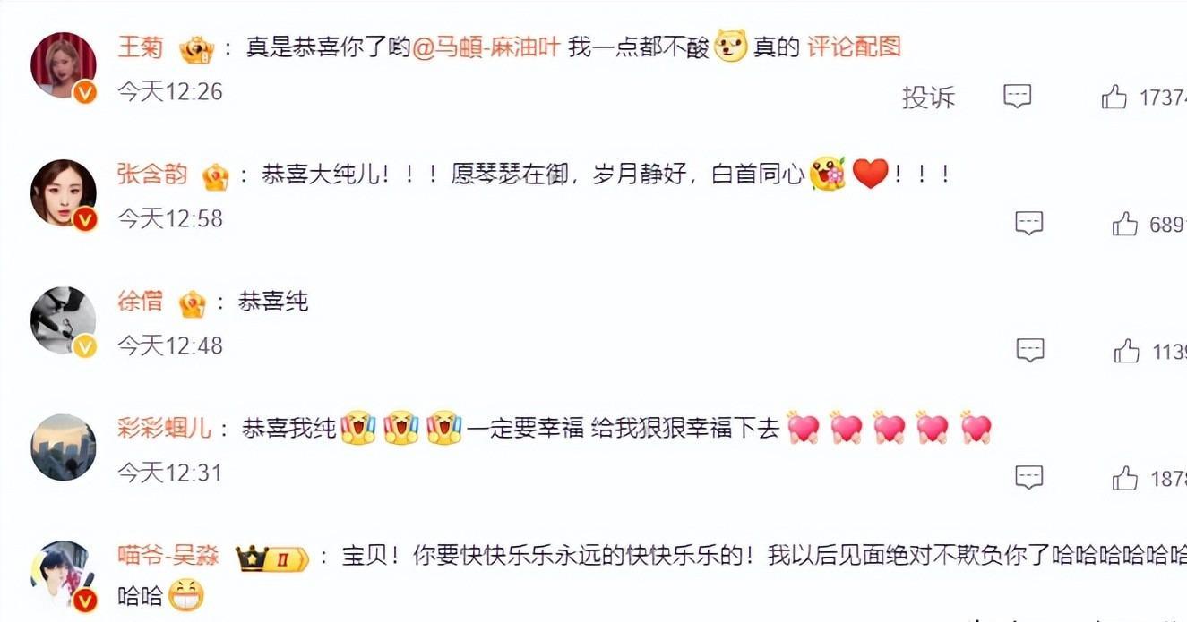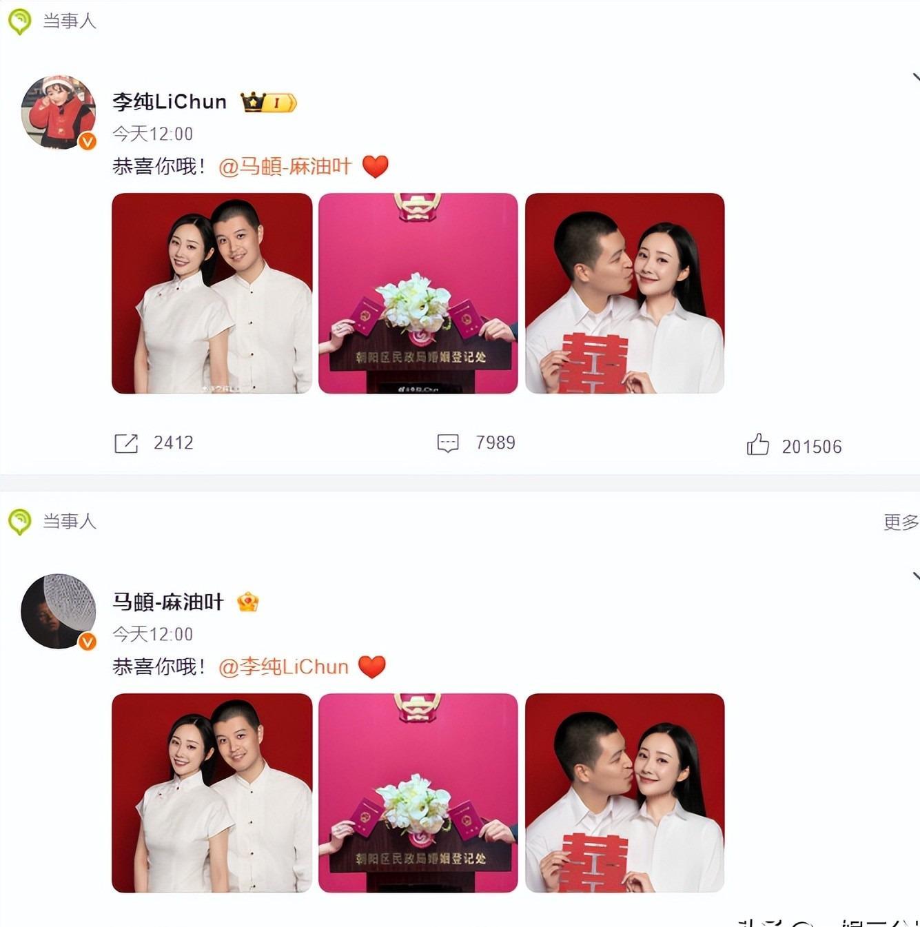 但今天马頔和李纯领证,五哈团却集体沉默了,没有一个人送祝福。