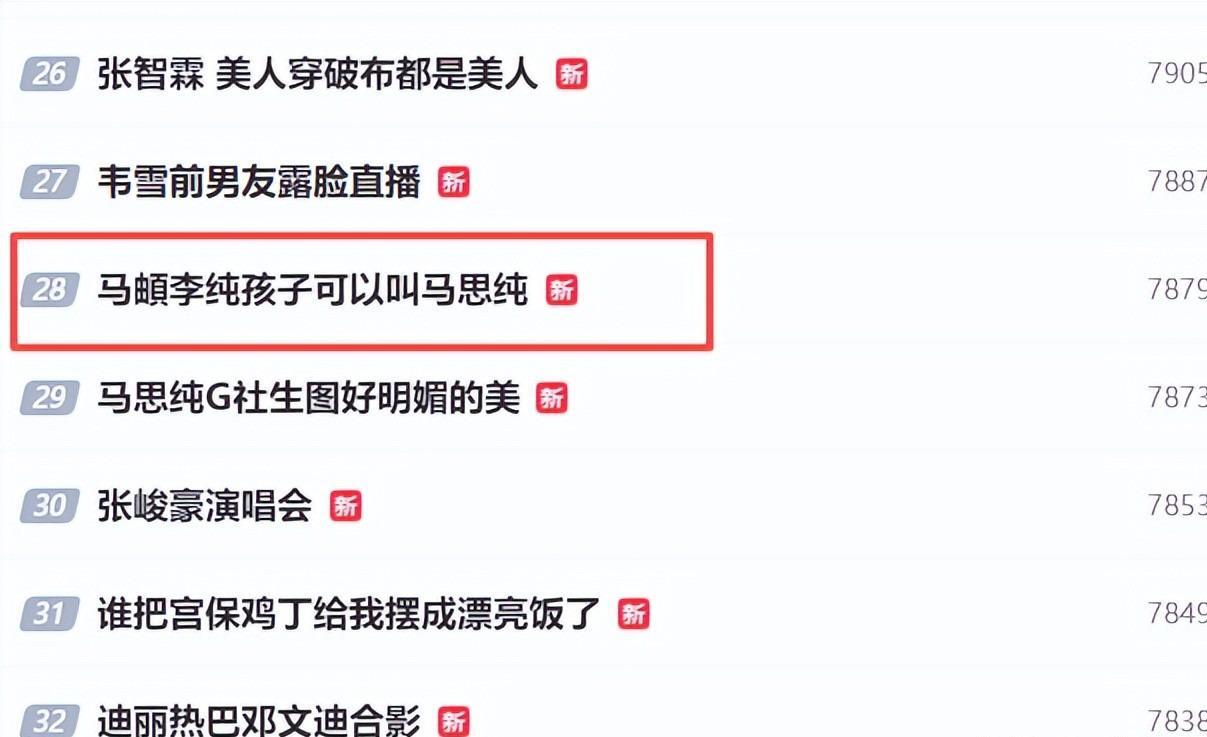还连带着马思纯一起上了个热搜:马頔李纯的孩子可以叫马思纯。