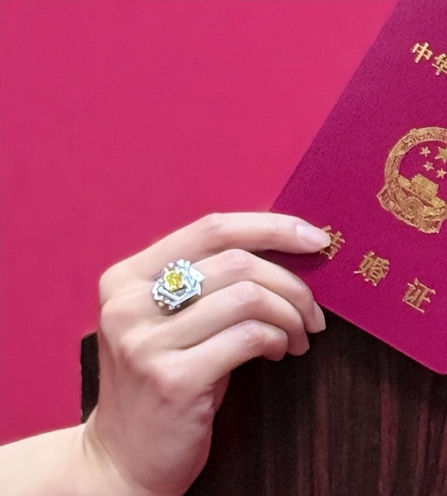 她的戒指和以往大众印象里的不一样,黄色的花朵型,很独特也很耀眼。