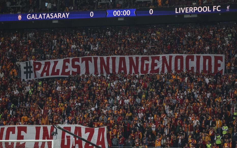 近日,据法国媒体《巴黎人报》的报道,在欧冠赛场上,加拉塔萨雷球迷在对阵利物浦的比赛中,以独特的方式展现了他们对巴勒斯坦人民的支持与声援。