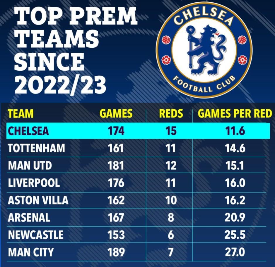 24岁的前锋佩德罗成为切尔西近4场比赛中第三位被罚下的球员,与罗伯特-桑切斯、特雷沃-查洛巴一同登上科巴姆训练基地的“违纪名单”。《太阳报》统计数据显示,自2022-23赛季以来,切尔西在英超顶级俱乐部中的红牌纪录最为糟糕,马雷斯卡执教期间的红牌数量增速甚至超过前任主帅。