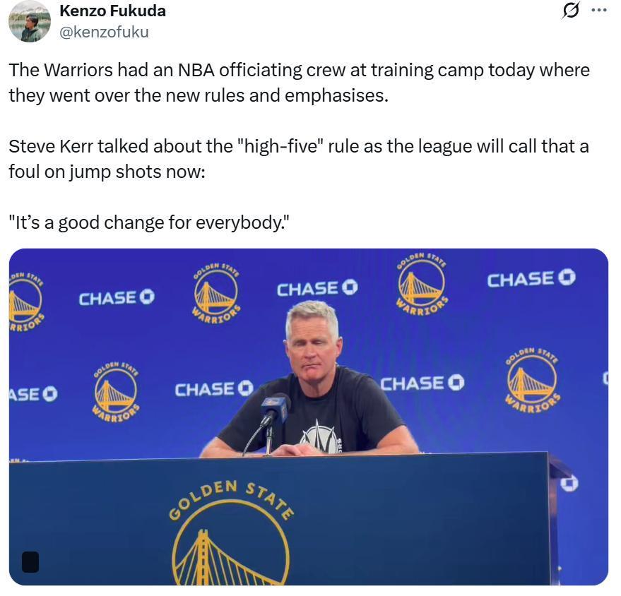 勇士队主帅科尔对新规表示支持,他认为这是新赛季最重要的规则调整之一。科尔透露,这一修改是由教练协会与联盟共同制定的,旨在避免防守者对跳投球员的犯规被漏判。
