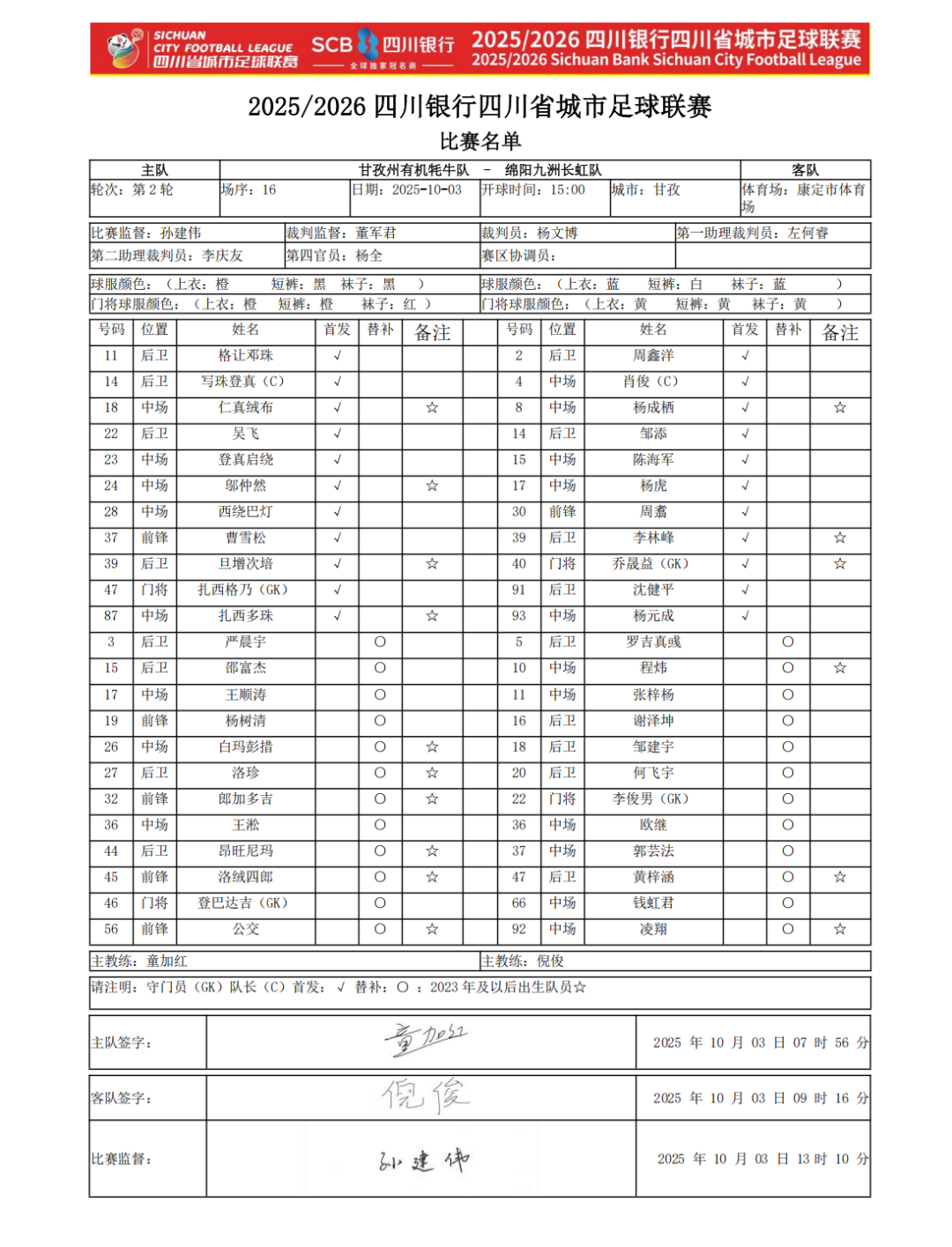 本次对决的两支队伍分别是甘孜有机牦牛队和绵阳九洲长虹队。双方球员名单已经正式公布,让我们一起来看看这两支队伍的阵容吧!