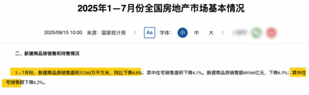 1-7月全国新房销售面积下降4%,销售金额下降6.2%,不少城市的库存去化周期已经拉长到40个月!