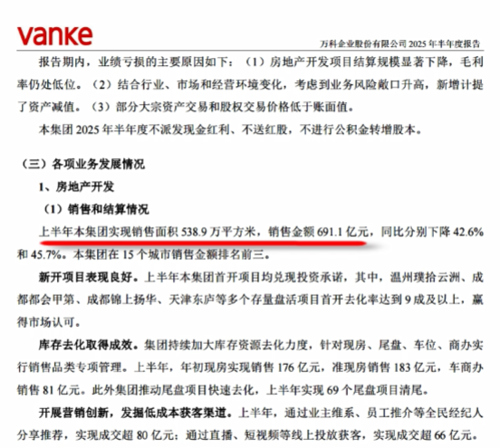 上半万科的年开发业务销售金额691.1亿元,这个数字,对比2024年,降幅达到45.7%。