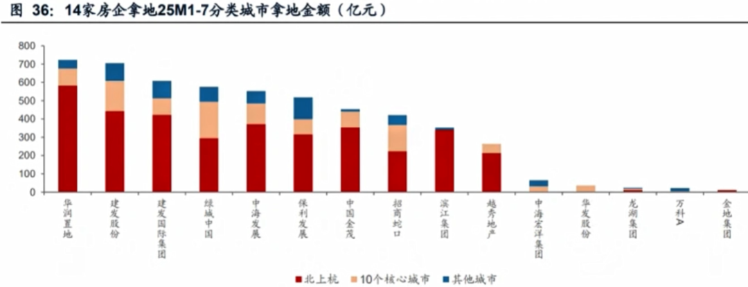 这是今年1-7月份,大型房企拿地金额,可以看到,万科已经彻底坐到小孩一桌去了。