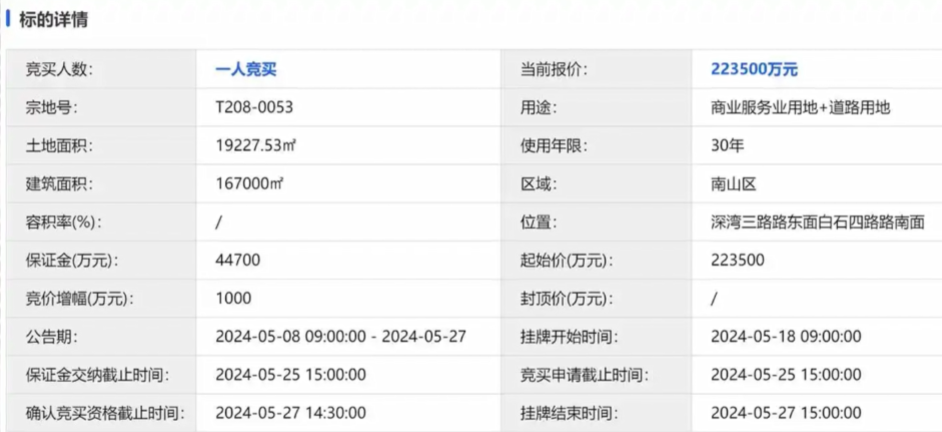 深圳南山区“深圳湾超级总部基地”卖了,亏了将近10个亿,以22亿的价格卖了,