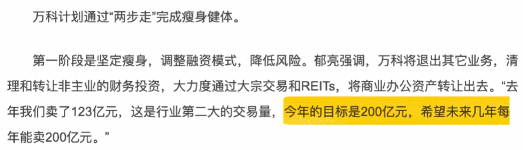 去年的时候,万科确实还有不少优质资产可以甩卖。