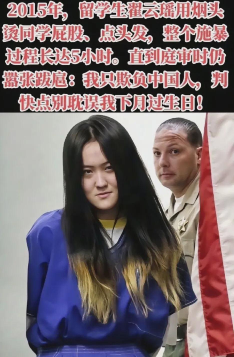 事情败露后,美国警察逮捕了翟某某等人。站在法庭上,她非但没有表现出丝毫悔意,反而嘲讽法官:“你们能不能快点啊,我还要赶回去过19岁生日呢!”在她眼中,这不是审判,而是耽误她过生日的麻烦事。而那句“我只欺负中国人”,更是让人心寒彻骨。