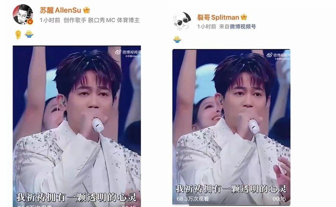 苏醒唱到“我祈祷拥有一颗透明的心灵”的“的”字时,像装了弹簧般反复跳跃,四人中只有曾比特勉强在调,另外三位直到结束都没找准音准。更有趣的是,“苏醒跑调”上热搜后,他本人不服,连用两个账号发布现场视频,坚称自己没有跑调。