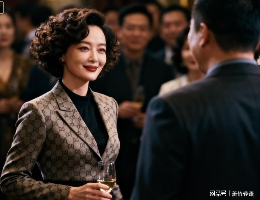 她烫着精致的卷发,化着浓艳的妆容,一身名牌时装,手腕上、脖子上、耳朵上,都闪烁着耀眼的光芒。