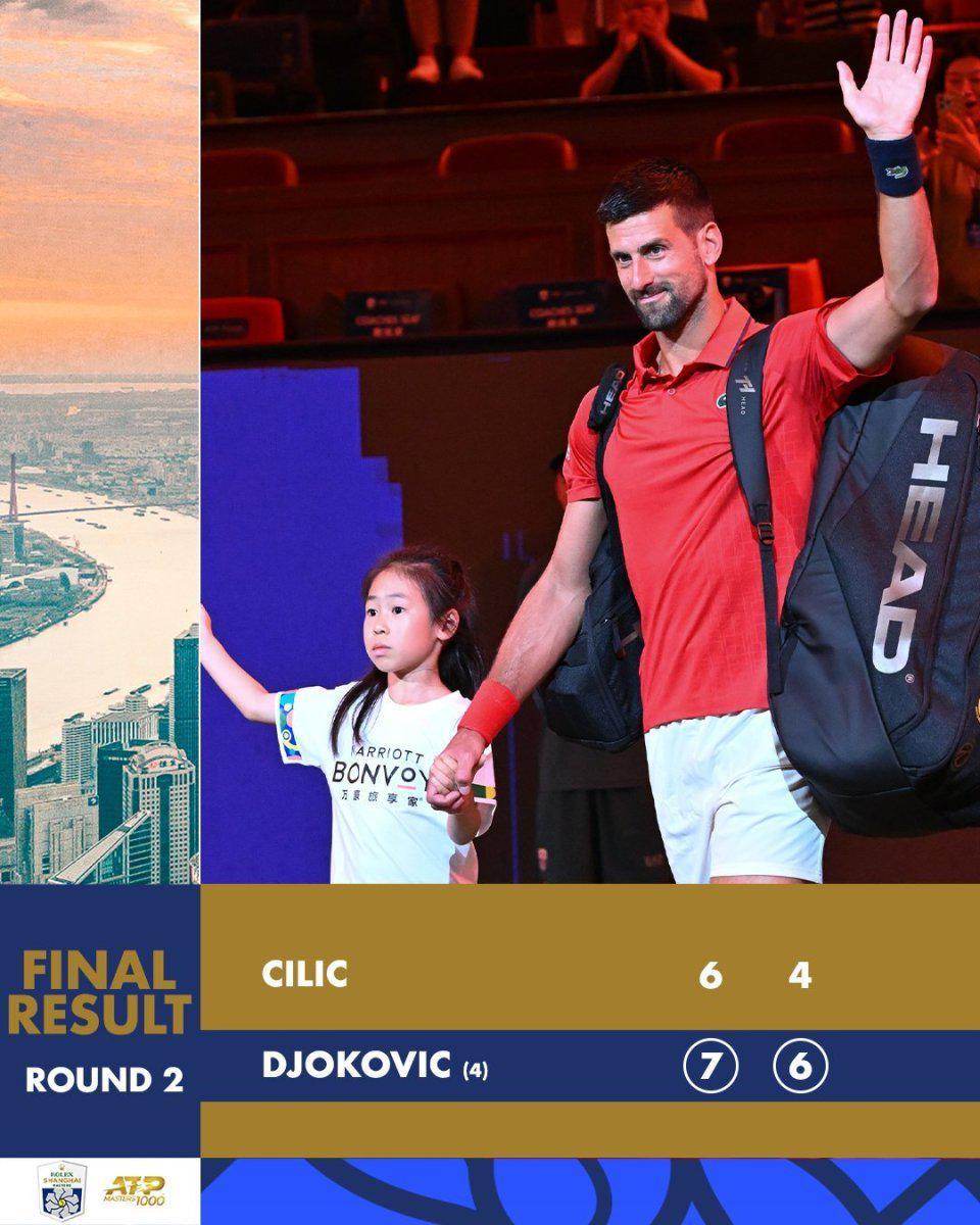 10月3日,ATP1000上海大师赛男单第二轮赛事激战正酣。在一场备受瞩目的大满贯冠军对决中,赛会4号种子德约科维奇与前美网冠军西里奇展开巅峰较量。最终,德约科维奇以7-6(2)、6-4直落两盘完胜对手,不仅取得上海大师赛开门红,更以38岁133天的年龄刷新ATP1000大师赛历史纪录——成为该级别赛事中击败大满贯冠军的最年长球员。