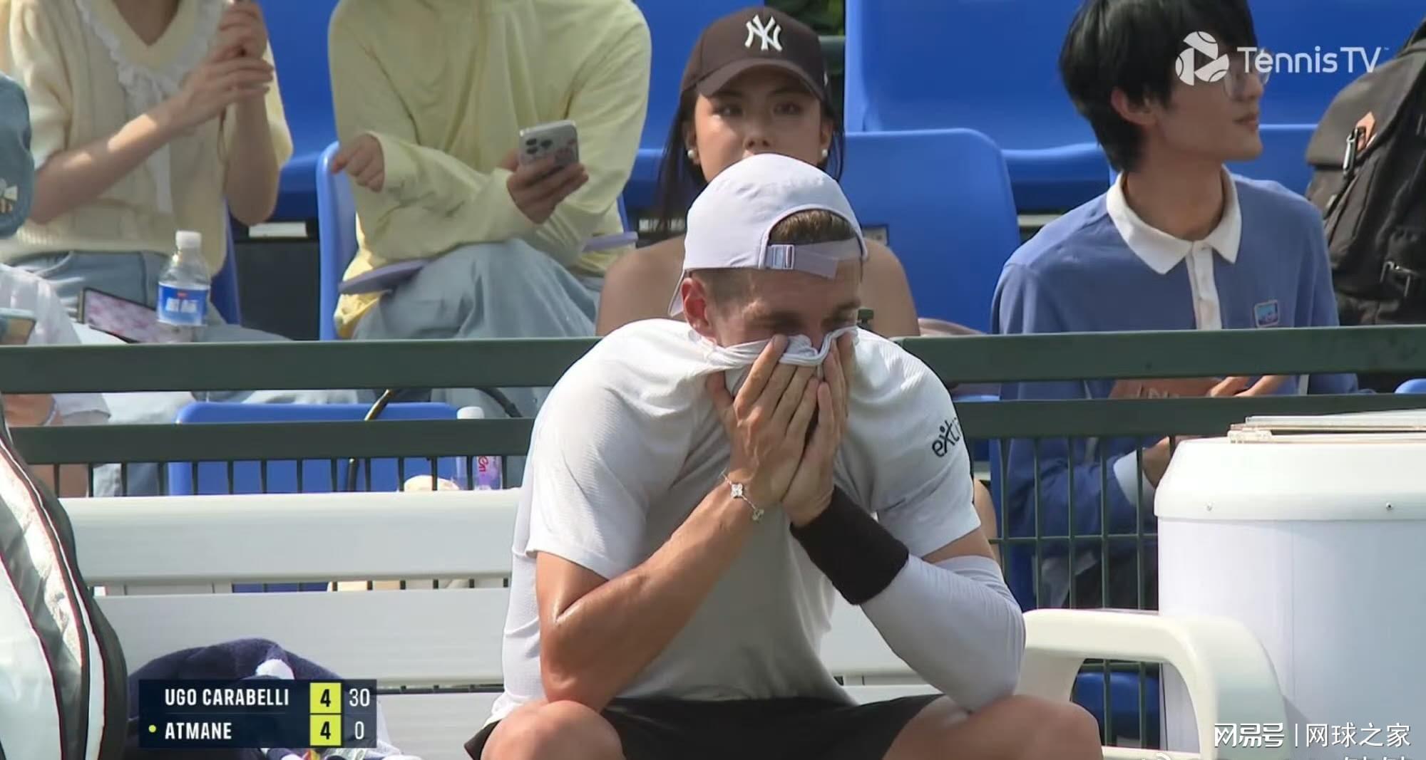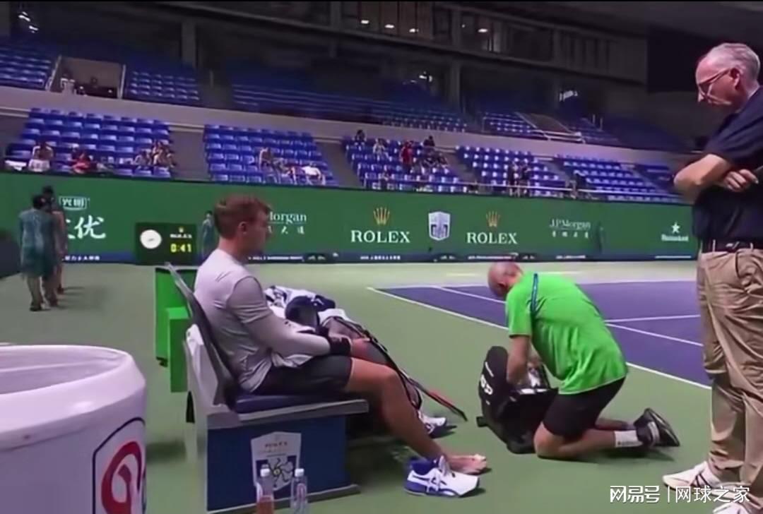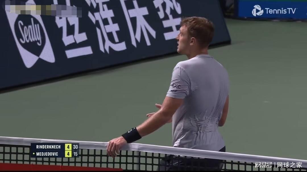 在与法国选手林德克内希的对决中,梅杰多维奇显然对高温天气毫无准备,身体很快就出现了严重的不适。在封闭的顶棚下,湿气仿佛成了无形的敌人,将每一个来回球都变成了一场体能消耗战。梅杰多维奇早早地显露出了疲态,他不断申请医疗暂停,总共中断时间达到了惊人的14分钟。他不仅用掉了一长一短两次医疗暂停,还选择了一次局间离场更衣,而且每次暂停的时长都超出了常规情况,这让他吃到了裁判的警告。