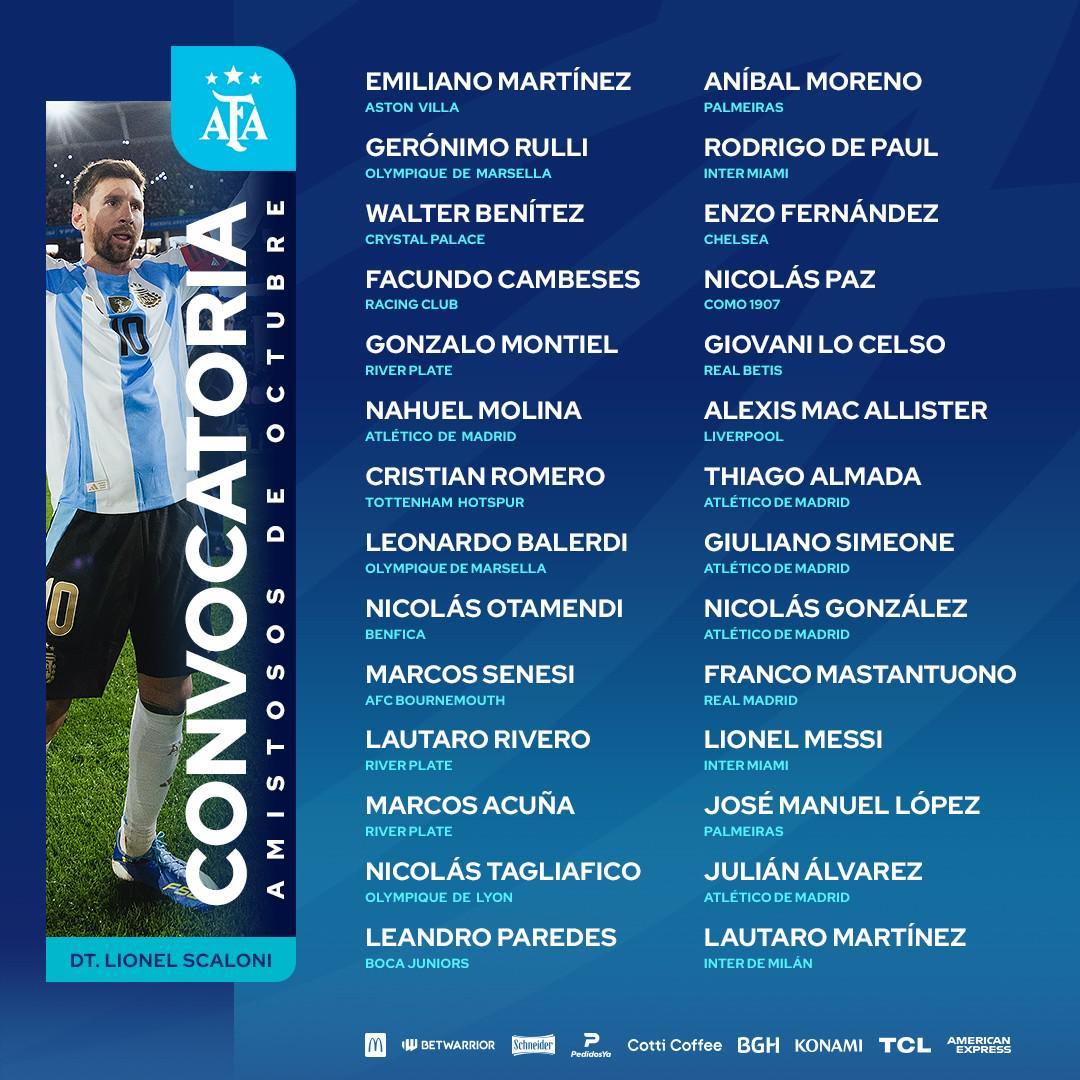 北京时间10月3日,阿根廷足协正式公布了即将于10月在美国举行的国际友谊赛大名单。本次名单由超级球星梅西领衔,恩佐、阿尔瓦雷斯、罗梅罗等知名球员均入选,阵容备受瞩目。