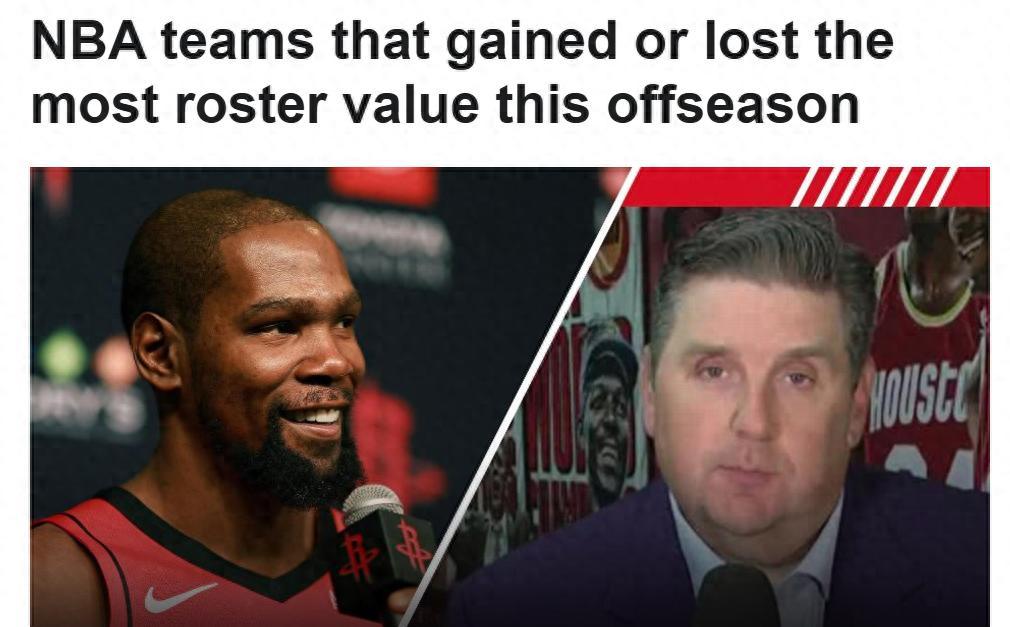 随着季前赛的打响,新赛季的NBA赛事即将拉开帷幕。近日,权威美媒ESPN根据高阶数据WAR(不可替代值)对各支球队现有阵容名单进行了评估,并公布了休赛期30支球队阵容价值变化榜单。其中,快船队凭借出色的引援操作荣登榜首,火箭队则因伤病因素遗憾错失榜首,湖人队位列第7,而勇士队则屈居第22名,引发了广泛讨论。