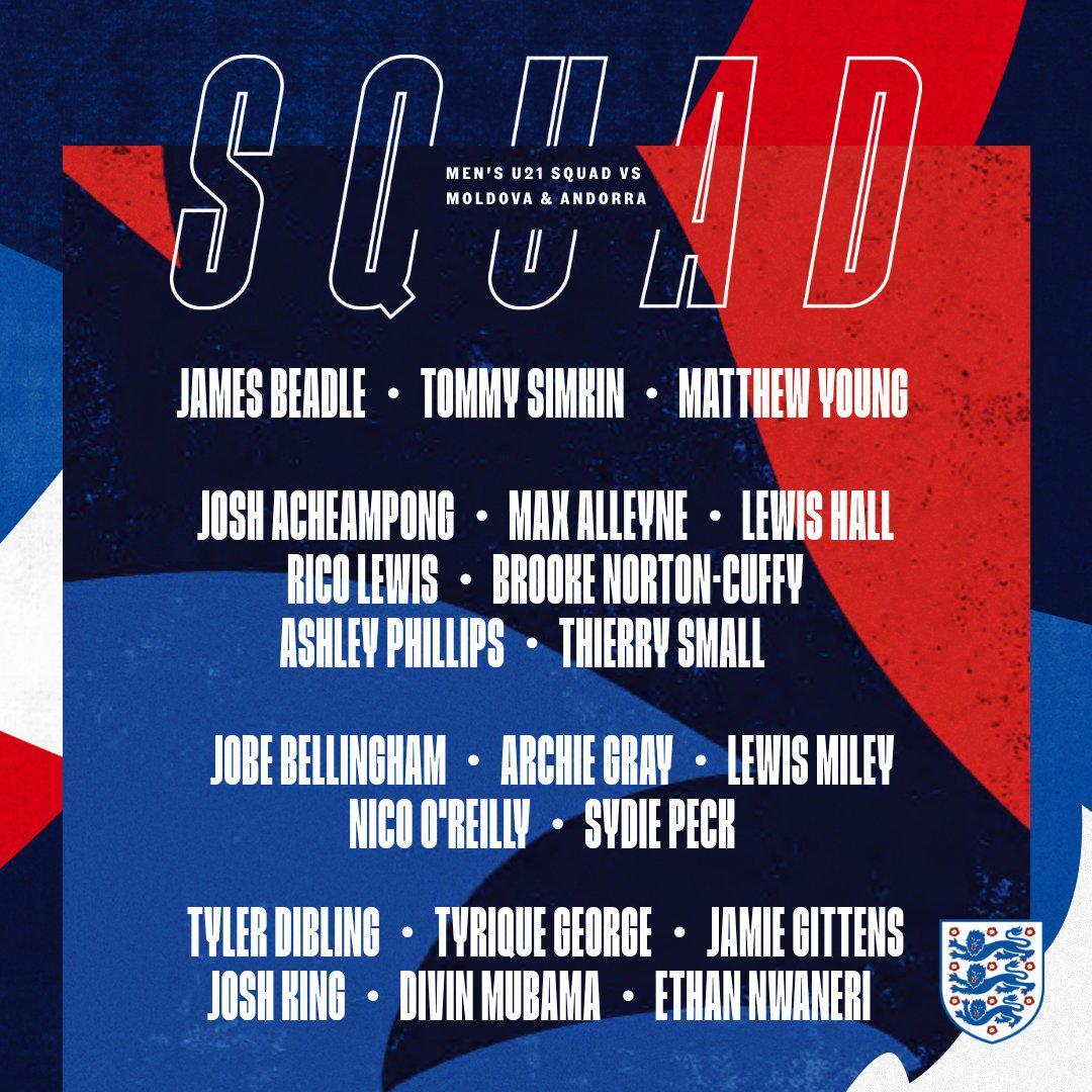 雷速体育10月3日讯,英格兰队官方正式公布了最新一期的U21国家队大名单。这支充满潜力的年轻队伍将在10月迎来两场重要比赛,分别是对阵摩尔多瓦U21和安道尔U21。