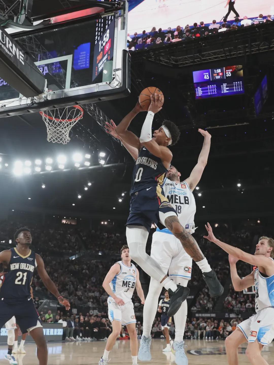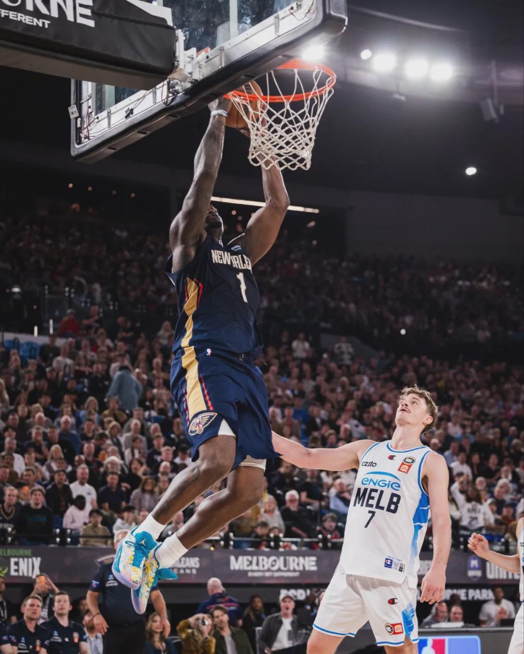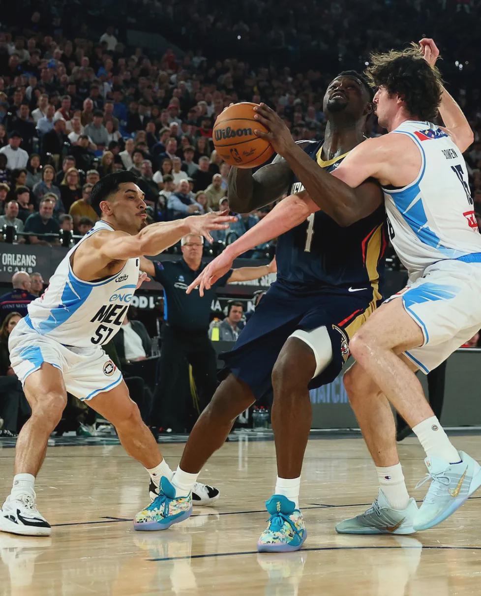 在NBA季前赛墨尔本站的激烈对决中,新奥尔良鹈鹕队以107-97的比分战胜了NBL联赛的墨尔本联队,为球迷们带来了一场精彩的篮球盛宴。本场比赛,鹈鹕队的新援乔丹·普尔迎来了他的首秀,尽管表现中规中矩,但另一位核心球员锡安的惊艳表现却成为了全场的焦点。