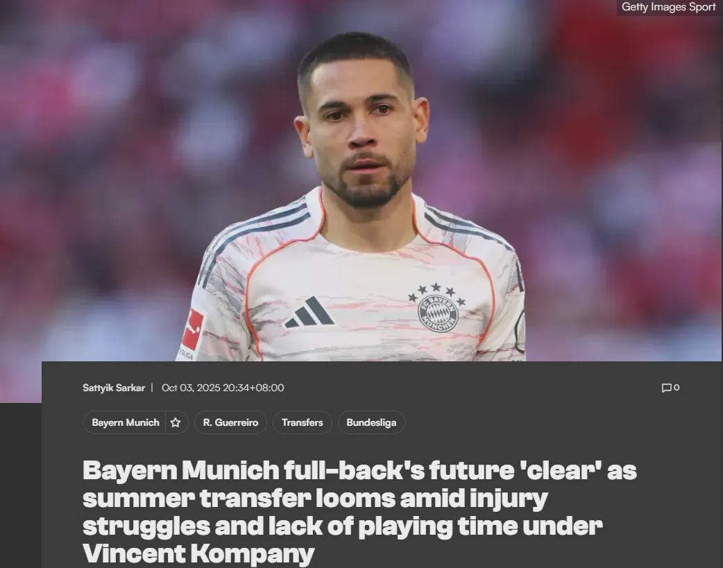 图片报还透露,拜仁后卫格雷罗可能在明年夏天合同到期后自由转会离开球队。现年31岁的格雷罗在2023年从多特蒙德加盟拜仁,至今为止他代表球队出战了72场各项比赛。然而,近两年他频繁受到伤病影响,始终未能锁定主力左后卫的位置。因此,拜仁很有可能选择不和他延长合同。上赛季,格雷罗在孔帕尼手下出战了23场比赛,其中19场首发。而本赛季,他虽然出战了6场比赛,但大部分都是替补登场。