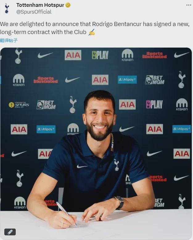 官方消息,热刺宣布和罗德里戈-本坦库尔签下了一份新的长期合同,具体年限没有透露。现年28岁的本坦库尔在2022年1月加盟热刺,至今为止他已经代表俱乐部出战了122场比赛,打进9球。在国家队层面,本坦库尔已经代表乌拉圭出战了72场比赛。