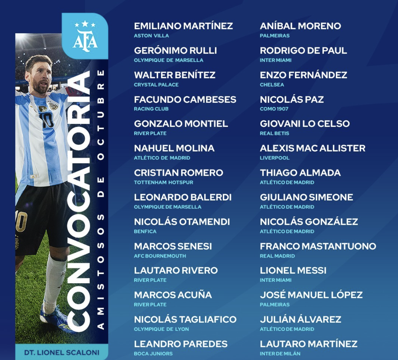 北京时间10月4日,阿根廷队正式对外公布了球队最新一期的大名单,这份名单由球王梅西领衔,同时阿尔瓦雷斯、大马丁等一众实力派球员也悉数入选。在本月的国际比赛日期间,阿根廷队将先后迎战委内瑞拉和波多黎各两支球队。然而,当这份大名单公布后,外界普遍认为斯卡洛尼在人员选择上显得相当保守,他更倾向于使用那些经验丰富的老将,而非培养新秀。