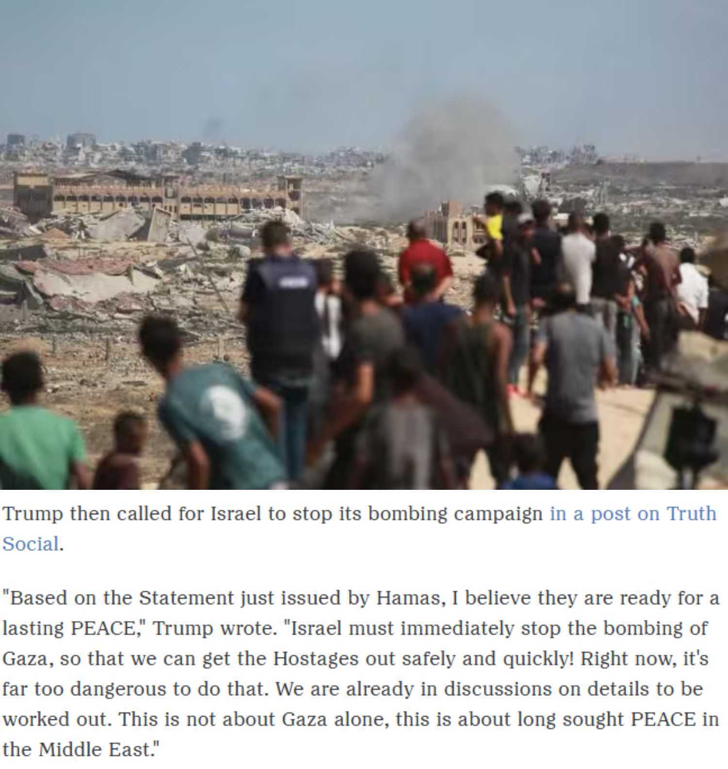美国总统特朗普3日在社交媒体发文称,基于哈马斯刚刚发表的声明,他相信哈马斯已准备好实现持久和平。他呼吁以色列立即停止对加沙的轰炸,以便安全快速地营救人质,并表示目前局势过于危险,已就相关细节展开讨论。