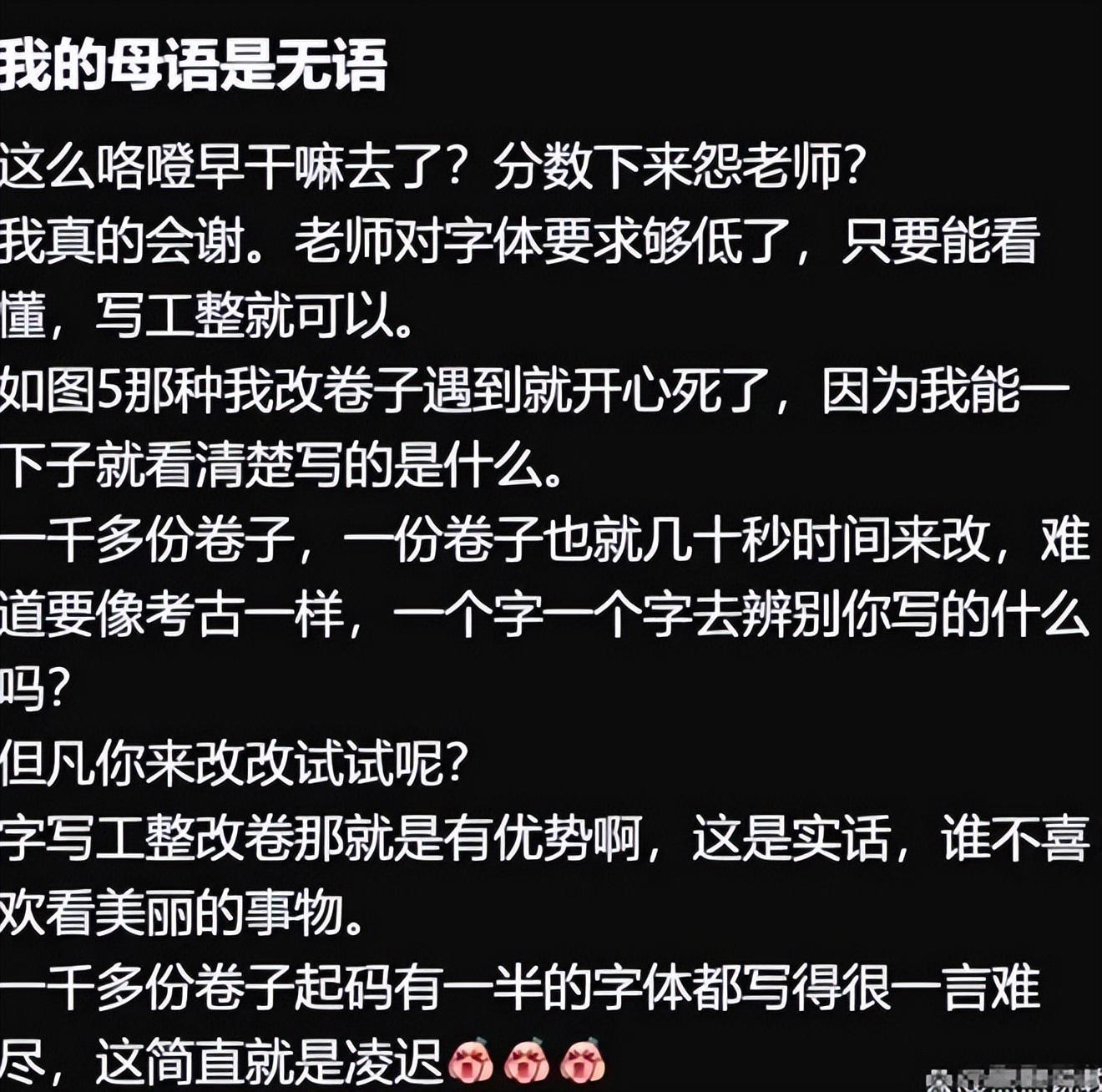 批卷老师每日需处理大量试卷,从潦草的“草上飞”到工整的学霸字体,无一不阅。他们对于何为赏心悦目的字迹有着清晰的判断。然而,这位女生的“咯噔字体”却让老师感到困惑与无奈,不禁质疑学生此举是折磨自己还是老师。