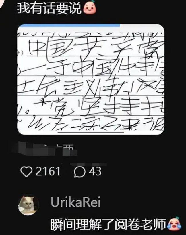 面对如此字迹,老师没有选择迁就,而是直接给出了低分。老师认为,若学生自我感动而不自知,注定无法在高考等关键考试中取得好成绩。毕竟,中考和高考不会因个人的“独特”而给予特殊照顾。