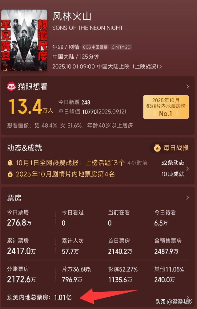 好在,在2025年的国庆档,这部被誉为都市传说的《风林火山》终于上映了。
