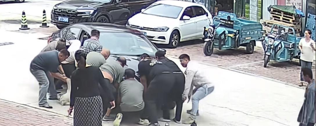据监控视频显示,这只胖狗当时正躺在路中间休息,一辆黑色轿车因视野盲区未注意到它,直接从狗狗身上碾过。听到狗狗的惨叫声后,周围群众迅速赶来,合力将车子抬起,成功将狗狗从车底救出。