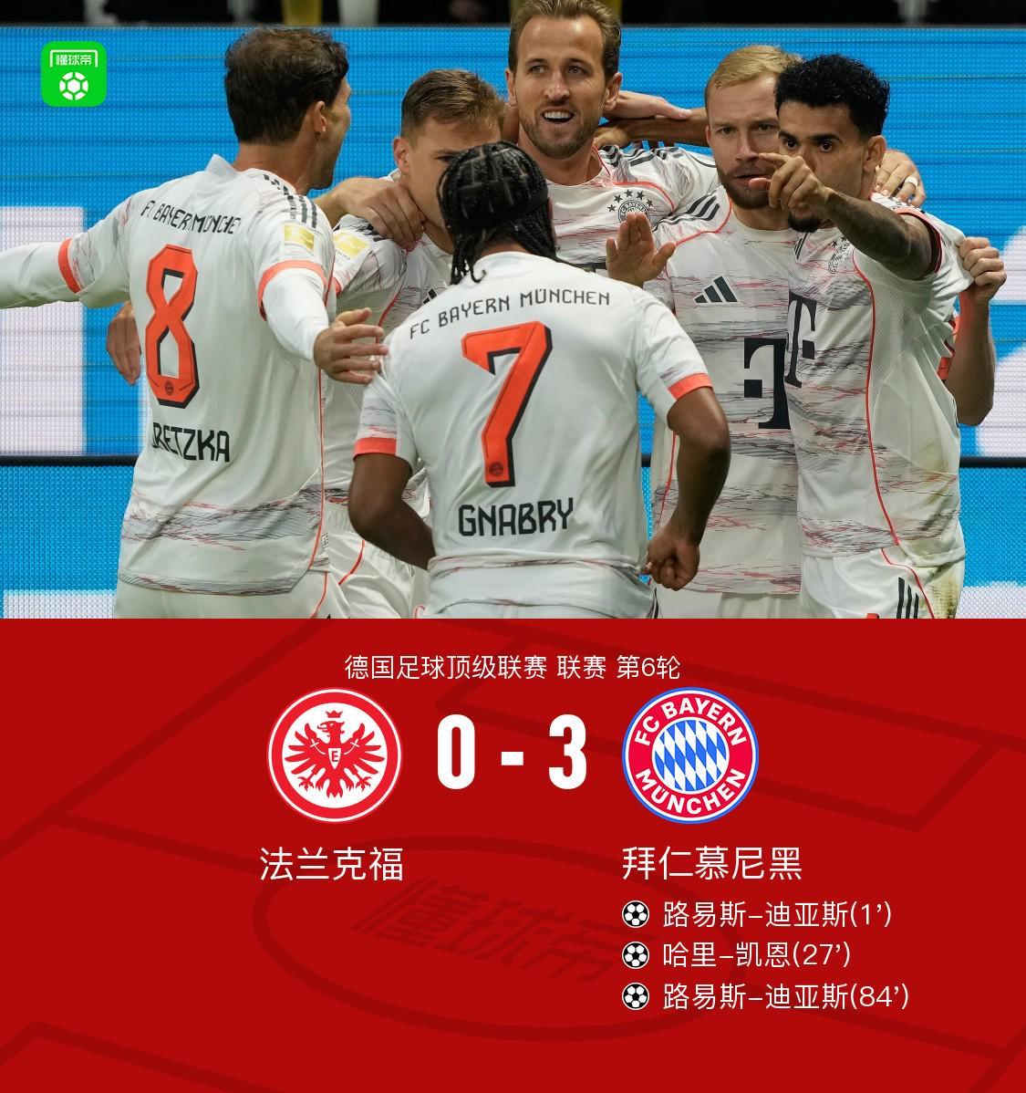 北京时间10月5日0:30,德甲联赛第6轮迎来焦点对决,拜仁慕尼黑客场挑战法兰克福。本场比赛在德意志银行公园球场进行,主裁判希伯特执法严谨,最终拜仁凭借路易斯-迪亚斯的出色发挥,以3-0的比分取得完胜。