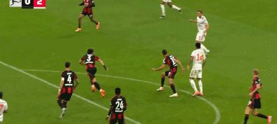 奥利塞在前场积极拼抢,成功断球后横传,皮球险些造成对方球员乌龙。