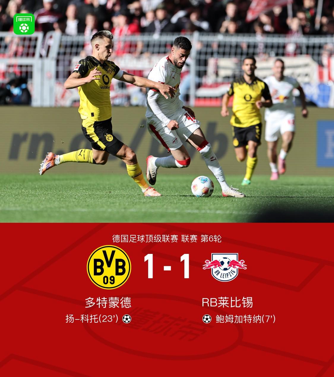 这场平局让多特蒙德继续以11分排名积分榜第三,莱比锡则以9分暂列第六。两队将在11月的德国杯中再度交锋,届时必将上演更加激烈的巅峰对决。