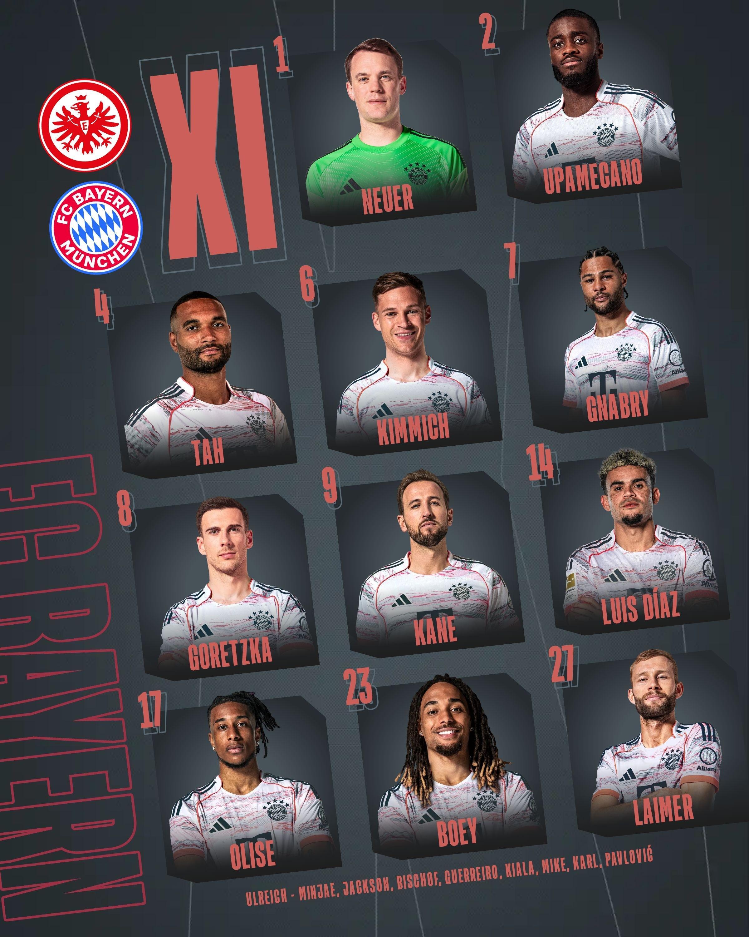 拜仁替补席同样星光熠熠:乌尔赖希、金玟哉、尼古拉-雅克松、比朔夫、格雷罗、卡夏诺-基亚拉、威兹德姆-迈克、伦纳特-卡尔和亚历山大-帕夫洛维奇等球员随时准备为球队贡献力量。