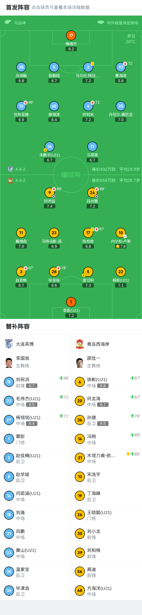 本场比赛,青岛西海岸在控球率、射门次数等关键数据上全面占优,阿齐兹与段刘愚的出色发挥成为制胜关键。大连英博虽创造多次得分机会,但临门一脚欠佳,最终遗憾落败。