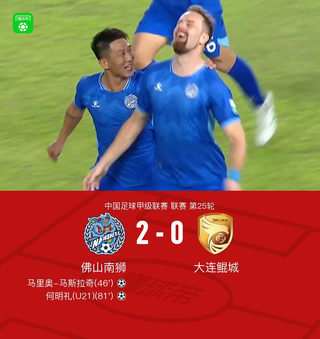 北京时间10月4日,中国足球甲级联赛第25轮迎来一场焦点对决,佛山南狮坐镇主场迎战大连鲲城。经过90分钟激烈角逐,佛山南狮凭借马里奥-马斯拉奇的破门与何明礼的世界波,以2-0完胜对手,全取三分。