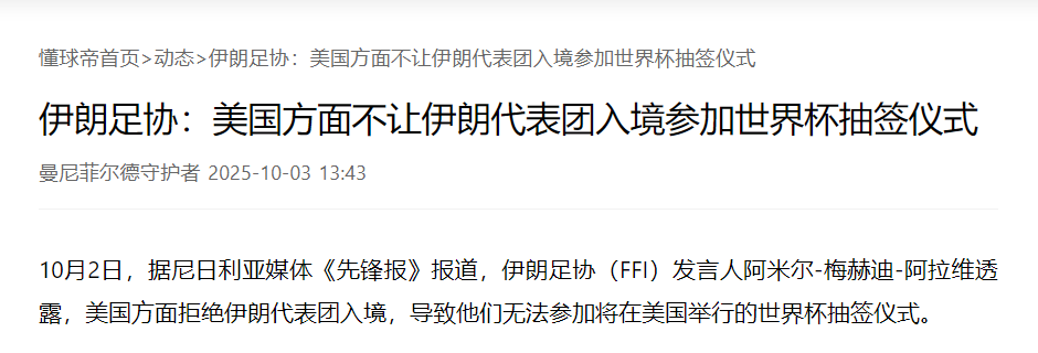 如今数月过去,国际足联仍未解决伊朗的参赛问题,美国方面也持续禁止伊朗入境。这一局面引发国内球迷对国足递补参赛的猜测。