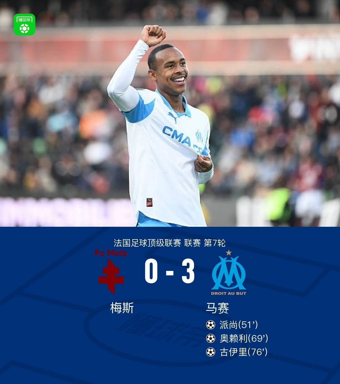 北京时间10月4日晚,法国足球甲级联赛第7轮迎来焦点对决,梅斯坐镇圣西姆福里安球场迎战马赛。经过90分钟激战,马赛凭借派尚、奥赖利和古伊里的精彩进球,以3-0完胜主队,全取三分后暂居积分榜前列。
