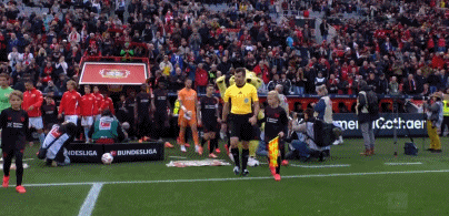双方球员步入球场,大战一触即发,现场气氛达到沸点。