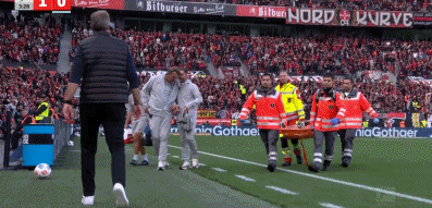 第45+1分钟,格里马尔多在拼抢中被对手打到面部,顿时血染赛场,随后被担架抬出场外,场面一度十分紧张。