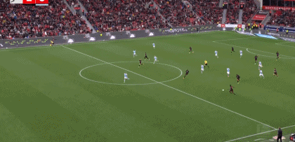 比赛进行到第33分钟,勒沃库森发动快速反击,巴斯克斯在右路送出一记精准的斜传,波库心领神会,快速插上,面对出击的门将冷静推射,皮球应声入网,勒沃库森1-0领先!这一进球彻底点燃了主场球迷的热情。