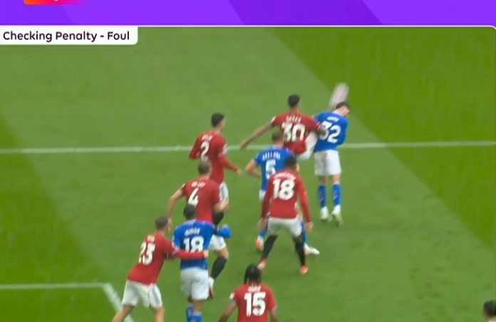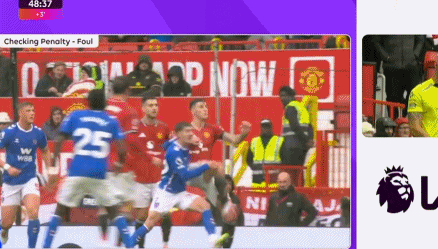 比赛进行到上半场补时第3分钟时,场上局势突然紧张起来。塞斯科在禁区内试图抬脚解围,却不慎踢到了对方球员休姆。休姆应声倒地,主裁判毫不犹豫地判罚了点球。这一决定立即引发了曼联球员的强烈不满,而场边的曼联球迷也发出了巨大的嘘声。