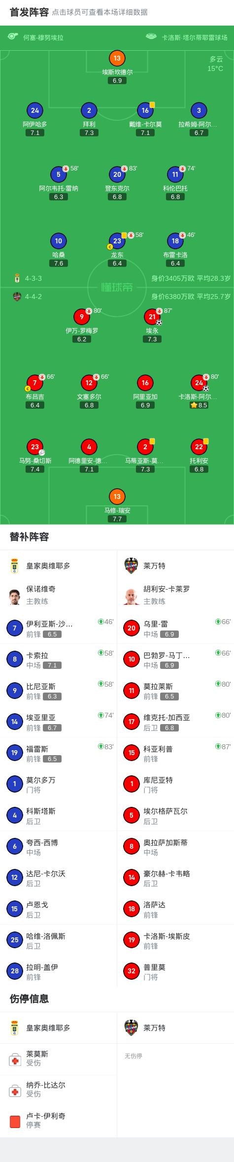 本场比赛,莱万特在控球率、射门次数等关键数据上均占据优势,展现了更强的进攻效率。技术统计显示,莱万特全场射门次数达到15次,其中7次射正,而皇家奥维耶多仅有8次射门,3次射正。
