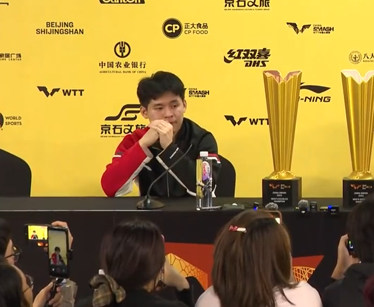 在刚刚落幕的国际乒联大满贯赛事中,中国组合王楚钦/林诗栋以出色发挥斩获男双冠军。赛后发布会上,两位选手分享了夺冠背后的故事与心路历程,其中王楚钦对三线作战的体能挑战直言不讳,林诗栋则特别感谢'头哥'的全程支持。