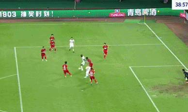 随后,双方继续展开激烈的对攻。第38分钟,兰克尔泽回做,韦林顿在禁区线附近右脚劲射,门将郭全博反应迅速,将球封出。紧接着,萨里奇的补射再次被郭全博化解,青岛海牛的进攻一次次无功而返。