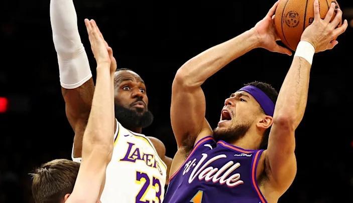 首节比赛,艾顿跳球获胜,湖人率先拿到球权。里夫斯弧顶三分开火,打进本场比赛首个进球。阿伦随即反击三分,为太阳队开张。里夫斯借助挡拆直突篮下上篮得手,狄龙底角埋伏,三分线外百步穿杨。八村塁迎着防守中距离干拔跳投,打成2+1。布克则以高难度飘逸跳投回应。八村塁不甘示弱,篮下强硬单打,转身抛投空心打进。布克闪电突破飞身上篮制造杀伤,站上罚球线两罚都有。阿伦手感火热,追身突袭三分再进一球。首节前半程,两队比分胶着,交替领先。