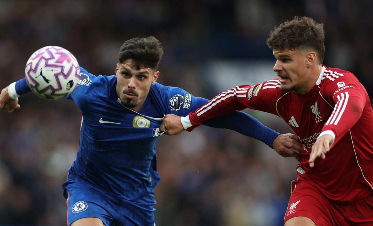 比赛刚开始踢了14分钟,切尔西就进球了!凯塞多带球狂飙,推进到禁区弧顶处,起脚远射,皮球直挂死角!这脚世界波太漂亮了!切尔西获得梦幻般的开局。第34分钟,布拉德利犯规,被出示黄牌。4分钟后,加纳乔的远射击中立柱弹出底线,非常可惜。随后,加纳乔在禁区内被推倒,但裁判没有任何表示。第44分钟,伊萨克头球攻门,顶高了。半场结束,切尔西1-0领先利物浦。