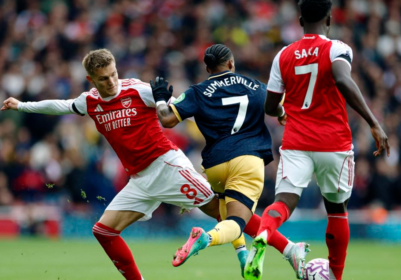 本场比赛,阿尔特塔排出433进攻阵型,萨卡、哲凯赖什和特罗萨德组成锋线三叉戟,厄德高、赖斯和埃泽坐镇中场,廷贝尔、萨利巴、加布里埃尔和卡拉菲奥里组成后防线,戴维-拉亚担任首发门将。替补席上,马丁内利、梅里诺和本-怀特随时待命,为球队提供战术变化的可能。