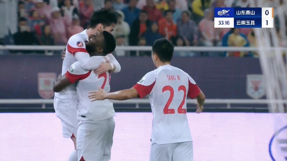 第33分钟,云南玉昆再次打出精彩反击。奥斯卡戏耍洛佩斯,将球送到后点,侯永永头球破门,0:1!山东泰山在占尽优势的情况下,意外落后了。