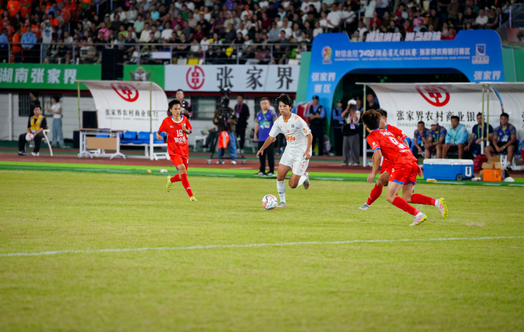 比赛伊始,主场作战的张家界队便借势发起猛攻,试图在开场阶段就占据主动。上半场第15分钟,张家界队77号球员秦维康抓住机会,率先破门得分,为球队取得了领先。