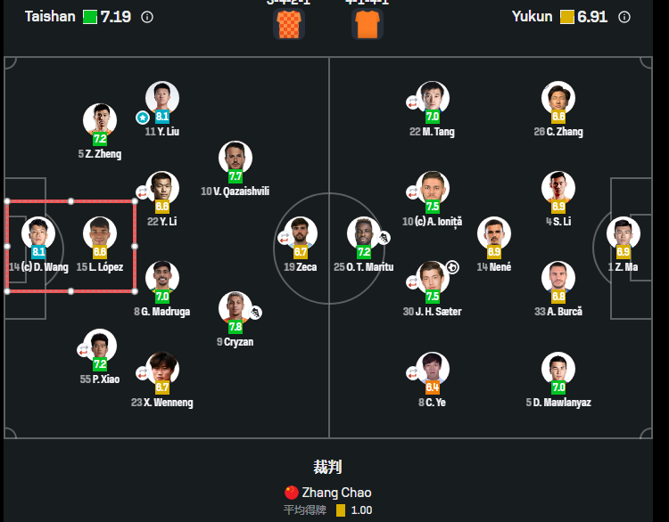 最后时刻,两队不断有威胁进攻出现,但距离进球均差一点运气。最终,双方1-1踢平,山东泰山无缘复仇。本场比赛中,中卫洛佩斯的表现堪称拙劣,9次对抗仅有3次胜出,作为一名拿着高薪的外援中卫,这样的表现确实难以令人满意。而王大雷则被迫做出了7次扑救,最终评分8.1为全场最高,包含替补球员在内洛佩斯6.6分则是全队最低。这场比赛,无疑给山东泰山敲响了警钟,也让我们看到了王大雷的英勇与坚韧。